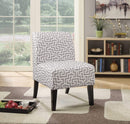 The Ollano armless slipper chair features contemporary style, padded back and seat cushion, covered with selected fabric pattern, and complemented by dark brown finish tapered wood legs. Create elegant and sleek contemporary style that is perfectly suited for any living room environment.
