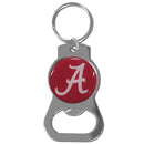 Hate searching for a bottle opener, get our Alabama Crimson Tide bottle opener key chain and never have to search again! The high polish key chain features a bright team emblem.Officially licensed College product Licensee: Siskiyou Buckle. High polish chrome finish. Bottle opener feature. Standard split ring . Alabama Crimson Tide domed emblem