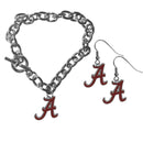 This Alabama Crimson Tide jewelry set comes with lightweight dangle earrings and a toggle chain bracelet. This sporty combo is the perfect fashion accessory for a fan looking for a fashionable way to show off her team pride.Officially licensed College product Licensee: Siskiyou Buckle. Earrings come with hypoallergenic, steel fishhook posts. Bracelet is a 7.5 inch link chain with convenient toggle clasp. Both classic jewelry pieces come with a fully cast metal team charm with enameled color. Alabama Crimson Tide ladies these earrings and bracelet sets are the perfect game-day outfit accessory