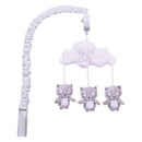 Encourage eye tracking and sound perception skills with the Night Owl Musical Mobile by Trend Lab. Three adorable gray plush owls are suspended from a cloud that says Night Owl using decorative white ribbon and slowly rotates to Brahms Lullaby. Mobile easily attaches to most cribs. Mobile measures approximately 24 in tall by 20 in wide. This mobile coordinates with the Feathered Friends collection by Trend Lab.