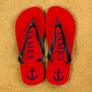 Anchor style Personalised Flip Flops in Red and Blue