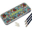 A budding Pirate's dream pencil case! Designed with everything a young wanna be Pirate needs to sail the Seven Sea's from swords and Pirate ships to Polly the parrot and friendly sea creatures. The tin itself is made from hardwearing stainless steel and is long & spacious enough to hold their pencils pens(a small size ruler)rubber and much more. The case can be personalised with the child's name - up to 10 characters. Dimensions: 18.8cm x 8cm x 2.4cm