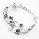 Made from Hallmarked 925 handcrafted silver this elegant bracelet is made from three bracelets (vines)each vine twists around each other making a delicate yet strong interwoven bracelet. The bracelet is laced with Forget Me Knot Flowers to remind the wearer wherever she is that she is never forgotten and is always loved. Forget Me Knots were originally used in Medieval times Knights would give the flowers to their lovers when they left for battle as a token of their love. Hand stamped with an initial.
