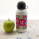 In a choice of six vibrant and fun colorways this child's water bottle will suit any little one. Dishwasher safe Holds 400ml of liquid Made from aluminum with sports cap Choose from either a square or diamond border and personalise with one initial.