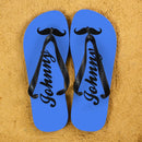 Moustache feature flipflops! Can be personalised with a name The straps and soles of the flip flops are black Available in several colorways Size Guide: Large - 10 - 12 Medium - 7 - 9 Small - 4 - 6