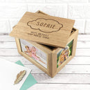 Made from solid oak this box is a beautiful keepsake to treasure for years to come. Fill the cube with special photos of memories past and present making this the perfect way to remember a significant event. Solid oak Glass frames x 4 Personalise lid with a name and a message Photos need to be 6'' x 4'' to fit the frame
