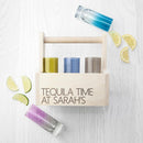 'Trust me. You can dance!' - Vodka Time to break out the tequila and dance like no one's watching! This fun set of six vibrant colored glasses is the perfect gift for a party animal. The glasses come in a fabulously cute wooden trug which is engraved with up to two lines of text. The trug is fantastic for both displaying the set when not used as well as serving the potent shots without risk of spilling - giving your party the wow factor! The shot glasses contain 6 different colors; Purple Blue Turquoise Green Grey Beige Please note that colors do look different on each individual screen.