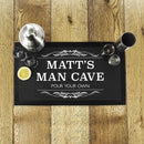 The perfect accessory for the Man Cave Bar or Inn! In black and personalised with a name of your choice he'll be in Man Cave heaven with this bar mat. Made from rubber this bar mat is nonslip Fabric top perfect in case there's any spillages! The words 'Man Cave' and 'Pour your own' come as standard text.