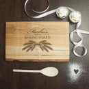 For a baking star! A fantastic carving board for freshly baked bread or to showcase your delicious treats! This board is made from hand crafted Welsh Ash timber every board is unique and one of a kind. The board is engraved to reveal the beautiful grain of the wood and you can personalise the board with a name. The boards are handmade in the wood(meaning that only wood from trees that have fallen is used)and feature the natural bark of the tree. The board is treated with a special food safe beeswax to make it great for use Choose from two sizes large and small. Wood is ideal for chopping as wood naturally inhibits bacterial growth. Wood is kind to your knives and can be refinished over time. Clean your chopping board with mild detergent and warm water and dry naturally standing up right. No not soak the board or place in the dishwasher. Dimensions: Large 45cm x 26cm x 2.5cm Small 38cm x 23cm x 2.5cm