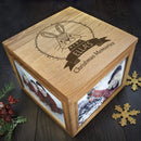 Made from solid oak this large keepsake box is the perfect gift for Christmas. With space for four large photos as well as a removable lid meaning you are able to fill this box with Christmas memories past and present. You can fill the box with cards special ornaments and much more. This adorable woodland themed keepsake box with rabbit character is a festive addition to the home. Made from natural it can reveal the natural grain of the wood. A lovely gift for a little one's first Christmas or for a child. Photo size - 15cm x 10cm