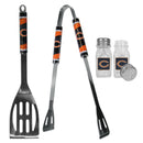 This stainless steel 2pc BBQ grill set is a tailgater's best friend. The colorful and large team graphics on each of the barbecue tools let's everyone know you are a fan! The set in includes a spatula and tongs with the Chicago Bears logo. The tool set comes with diner replica salt & pepper shakers that feature the team logo.