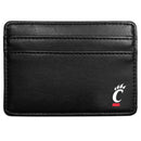 Ditch your bulky wallet! This super slim leather wallet is the perfect weekend companion. The compact design features 2 credit card slots on the front and one on the back and an inner middle pocket for cash. The front of the wallet has a crisp silk screened Cincinnati Bearcats logo.