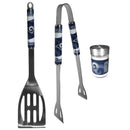 This stainless steel 2pc BBQ grill set is a tailgater's best friend. The colorful and large team graphics on each of the barbecue tools let's everyone know you are a fan! The set in includes a spatula and tongs with the Los Angeles Rams logo. The tool set comes with a compact shaker is 2 inch tall with a twist top that closes off the holes at the top making it perfect for travel preventing those messy spills. The shaker has wide holes perfect for keeping your pepper seeds or cheese toppings.
