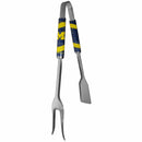 The perfect space saving tool! This stainless steel grilling tool is a spatula, tongs and fork all in one high-quality BBQ tool. The tool features bright Michigan Wolverines graphics.