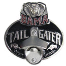 You're not going to find this cool hitch cover anywhere else! These quality metal hitch covers feature a functional bottle opener and the Alabama Crimson Tide logo with enameled details. Kit comes with wire plugs that fit a class III hitch receiver. Officially licensed College product Licensee: Siskiyou Buckle. Class III hitch cover for 2 inch hitch receivers . Fully cast metal hitch with enameled details. This unique hitch comes with a bottle opener. Alabama Crimson Tide logo with enameled colors