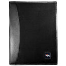 Our leather and canvas padfolio perfectly blends form and function. The attractive portfolio is bound in fine grain leather with an attractive canvas finish and the interior is a soft nylon. This high quality business accessory also features a fully cast metal Denver Broncos emblem that is subtly set in the corner of the organizer. It is packed with features like 6 card slots for badges, business cards, hotel keys or credit cards and ID with a large pocket for loose papers and a writing tablet slot making it a must-have for the professional on the go. Officially licensed NFL product Licensee: Siskiyou Buckle. Bound in fine grain leather. Durable canvas finish with nylon interior. 6 card slots for badges, business cards, hotel keys and more. Fully cast metal Denver Broncos emblem making it the perfect gift for the sports loving business professional in your life