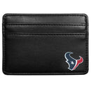 Ditch your bulky wallet! This super slim leather wallet is the perfect weekend companion. The compact design features 2 credit card slots on the front and one on the back and an inner middle pocket for cash. The front of the wallet has a crisp silk screened Houston Texans logo. Officially licensed NFL product Licensee: Siskiyou Buckle. Genuine fine grain leather wallet. 3 credit card slots, inner pocket for cash. Super slim wallet. Houston Texans silk screened logo