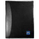 Our leather and canvas padfolio perfectly blends form and function. The attractive portfolio is bound in fine grain leather with an attractive canvas finish and the interior is a soft nylon. This high quality business accessory also features a fully cast metal Los Angeles Chargers emblem that is subtly set in the corner of the organizer. It is packed with features like 6 card slots for badges, business cards, hotel keys or credit cards and ID with a large pocket for loose papers and a writing tablet slot making it a must-have for the professional on the go. Officially licensed NFL product Licensee: Siskiyou Buckle. Bound in fine grain leather. Durable canvas finish with nylon interior. 6 card slots for badges, business cards, hotel keys and more. Fully cast metal Los Angeles Chargers emblem making it the perfect gift for the sports loving business professional in your life