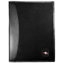 Our leather and canvas padfolio perfectly blends form and function. The attractive portfolio is bound in fine grain leather with an attractive canvas finish and the interior is a soft nylon. This high quality business accessory also features a fully cast metal San Francisco 49ers emblem that is subtly set in the corner of the organizer. It is packed with features like 6 card slots for badges, business cards, hotel keys or credit cards and ID with a large pocket for loose papers and a writing tablet slot making it a must-have for the professional on the go. Officially licensed NFL product Licensee: Siskiyou Buckle. Bound in fine grain leather. Durable canvas finish with nylon interior. 6 card slots for badges, business cards, hotel keys and more. Fully cast metal San Francisco 49ers emblem making it the perfect gift for the sports loving business professional in your life