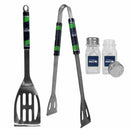 This stainless steel 2pc BBQ grill set is a tailgater's best friend. The colorful and large team graphics on each of the barbecue tools let's everyone know you are a fan! The set in includes a spatula and tongs with the Seattle Seahawks logo. The tool set comes with diner replica salt & pepper shakers that feature the team logo.