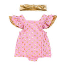 2Pcs Set 0-2 Years Solid Color Bowknot Headband Golden Dots Flounce Sleeve Fashion Backless Design Girl Bodysuit