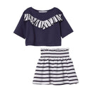 2Pcs Set Black Stripe Skirts And Stripe On The Chest Short Sleeve Cute Cotton Kids Tops
