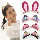 2pcs/Set Cute Hair Clips For Girls Glitter Rainbow Felt Fabric Flowers Hairpins Cat Ears Bunny Barrettes Kids Hair Accessories