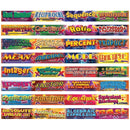 Each eight-strip border set features four math vocabulary words with definitions on each strip for a total of 32 words that can be used as a border, cut apart into flash cards, or displayed together on a wall. Sold as 3 sets.