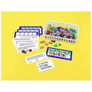 This hands-on math center is the perfect way for K-2 students to practice addition and math facts to 18 while learning to recognize how signal words and phrases provide critical cues to solving word problems. Just choose the animal props that allow you to visualize one of the word problems, grab a Ten Frame, and create and solve the problem. Check your answers by using scratch paper to calculate the answer. 96 sequenced story problems range from simple addition and subtraction word problems to more challenging problems that will have children solving for the unknown. Includes 125 fun 3-D figures that bring animal-inspired word problems to life, 96 reproducible word problems, 6 Ten Frames, and Teaching Notes, all in a sturdy storage basket.