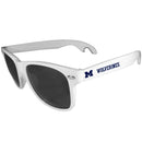 Seriously, these sunglasses open bottles! Keep the party going with these amazing Michigan Wolverines bottle opener sunglasses. The stylish retro frames feature team designs on the arms and functional bottle openers on the end of the arms. Whether you are at the beach or having a backyard BBQ on game day, these shades will keep your eyes protected with 100% UVA/UVB protection and keep you hydrated with the handy bottle opener arms.Officially licensed College product. Maximum UVA/UVB protection. The 6 inch arms feature bottle opener tips, front of the frames is 5.5 inches. Style and functionality are in perfect balance with these on trend sunglasses. Michigan Wolverines graphics on each arm