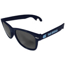 Seriously, these sunglasses open bottles! Keep the party going with these amazing N. Carolina Tar Heels bottle opener sunglasses. The stylish retro frames feature team designs on the arms and functional bottle openers on the end of the arms. Whether you are at the beach or having a backyard BBQ on game day, these shades will keep your eyes protected with 100% UVA/UVB protection and keep you hydrated with the handy bottle opener arms.Officially licensed College product. Maximum UVA/UVB protection. The 6 inch arms feature bottle opener tips, front of the frames is 5.5 inches. Style and functionality are in perfect balance with these on trend sunglasses. N. Carolina Tar Heels graphics on each arm
