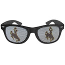 Our officially licensed game day shades are the perfect accessory for the devoted Wyoming Cowboy fan! The sunglasses have durable polycarbonate frames with flex hinges for comfort and damage resistance. The lenses feature brightly colored team clings that are perforated for visibility. Officially licensed College product Licensee: Siskiyou Buckle. Maximum UVA/UVB protection. Flex hinges for comfort and durability. Perforated lenses allow you to see. Wyoming Cowboy logo