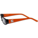 Our Denver Broncos reading glasses are 5.25 inches wide and feature the team logo on each arm. Magnification Power 1.75. Officially licensed NFL product Licensee: Siskiyou Buckle. Flex hinges for comfort and break resistance. Team colored frames. Strength 1.75 . Denver Broncos logos on each arm