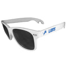 Seriously, these sunglasses open bottles! Keep the party going with these amazing Detroit Lions bottle opener sunglasses. The stylish retro frames feature team designs on the arms and functional bottle openers on the end of the arms. Whether you are at the beach or having a backyard BBQ on game day, these shades will keep your eyes protected with 100% UVA/UVB protection and keep you hydrated with the handy bottle opener arms.Officially licensed NFL product. Maximum UVA/UVB protection. The 6 inch arms feature bottle opener tips, front of the frames is 5.5 inches. Style and functionality are in perfect balance with these on trend sunglasses. Detroit Lions graphics on each arm