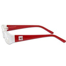 Our Kansas City Chiefs reading glasses are 5.25 inches wide and feature the team logo on each arm. Magnification Power 2.00. Officially licensed NFL product Licensee: Siskiyou Buckle. Flex hinges for comfort and break resistance. Team colored frames. Strength 2.00. Kansas City Chiefs logos on each arm