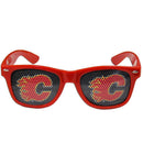 Our officially licensed game day shades are the perfect accessory for the devoted Calgary Flames fan! The sunglasses have durable polycarbonate frames with flex hinges for comfort and damage resistance. The lenses feature brightly colored team clings that are perforated for visibility. Officially licensed NHL product Licensee: Siskiyou Buckle. Maximum UVA/UVB protection. Flex hinges for comfort and durability. Perforated lenses allow you to see. Calgary Flames logo