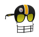 For the fan that's always on, these fun team shades are a must. Complete with colorful team logos and facemask, they'll get you as fired up for the game as the players. Wear them at the game, tailgate party or even on Halloween. Here's the way to see your face on TV when the camera pans the stands. Approx. 6-1/2"L x 2"W x 5-3/4"H. Made in China