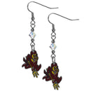 Our crystal dangle earrings are the perfect accessory for your game day outfit! The earrings are approximately 1.5 inches long and feature an iridescent crystal bead and nickel free chrome Arizona St. Sun Devils charm on nickel free, hypoallergenic fishhook posts.Officially licensed College product Licensee: Siskiyou Buckle. Iridescent crystal accent bead. Hypoallergenic fish hook posts. Show off your team spirit . Arizona St. Sun Devils charm with enameled team colors