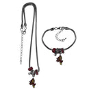 This must-have Arizona St. Sun Devils look features the wildly popular euro bead style teamed with eye catching team charms. This set comes with a fashionable snake chain bracelet and 18 inch necklace both featuring a variety of team colored euro beads and rhinestone beads for classy look that outshines the average fan jewelry. This high quality set is great for game-day but a fan's going to want to show off this set everyday!Officially licensed College product Licensee: Siskiyou Buckle. Featuring the wildly popular euro beads on an 18 inch necklace and matching bracelet. High quality jewelry at a great price. On trend look paired with a sporty twist, featuring a fully cast metal team charm with enameled details. Arizona St. Sun Devils ladies these necklace and bracelet sets are the perfect game-day outfit accessory