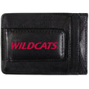 This super slim leather wallet lets you have all the benefits of a money clip while keeping the organization of a wallet. On one side of this front pocket wallet there is a strong, magnetic money clip to keep your cash easily accessible and theÊArizona Wildcats team logo on the front. The versatile men's accessory is a perfect addition to your fan apparel. Officially licensed College product. Geniune leather men's fashion accessory. Slim style wallet with lots of storage. Magnetic money clip on one side and windowed ID slot on the other. Crisp, digital Arizona Wildcats logo