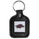 Our Arkansas Razorbacks black key fob with stitched detail and inlaid, metal team emblem with enameled color details. Officially licensed College product Licensee: Siskiyou Buckle. Genuine leather key chain. Standard split ring. Metal team emblem. Great way to show off your Arkansas Razorbacks pride
