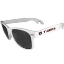 Seriously, these sunglasses open bottles! Keep the party going with these amazing Auburn Tigers bottle opener sunglasses. The stylish retro frames feature team designs on the arms and functional bottle openers on the end of the arms. Whether you are at the beach or having a backyard BBQ on game day, these shades will keep your eyes protected with 100% UVA/UVB protection and keep you hydrated with the handy bottle opener arms.Officially licensed College product. Maximum UVA/UVB protection. The 6 inch arms feature bottle opener tips, front of the frames is 5.5 inches. Style and functionality are in perfect balance with these on trend sunglasses. Auburn Tigers graphics on each arm