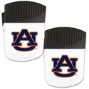 Use this attractive clip magnet to hold memos, photos or appointment cards on the fridge or take it down keep use it to clip bags shut. The magnet features a printed Auburn Tigers logo.Officially licensed College product Licensee: Siskiyou Buckle. Pack of 2, 2 inch wide clip magnet, with bottle opener on the back. Strong magnet to hold memos or notes. Use a clip to keep chips or other bag items fresh. The Auburn Tigers logo is printed on the front of the magnet