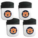 Use this attractive clip magnet to hold memos, photos or appointment cards on the fridge or take it down keep use it to clip bags shut. The magnet features a Auburn Tigers dome emblem.Officially licensed College product Licensee: Siskiyou Buckle. Pack of 4, 2 inch wide clip magnet, with bottle opener on the back. Strong magnet to hold memos or notes. Use a clip to keep chips or other bag items fresh. Clip features a Auburn Tigers dome logo on the front of the magnet