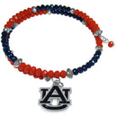 Our Auburn Tigers memory wire crystal bracelet is trendy way to show off your love of the game. The double wrap bracelet is completely covered in 4 mm crystals that are broken up with adorable football beads creating a designer look with a sporty twist. The bracelet features a fully cast, metal team charm that has expertly enameled team colors. This fashion jewelry piece is a must-have for the die-hard fan with chic style.Officially licensed College product Licensee: Siskiyou Buckle. Double wrap memory wire bead bracelet. 4 mm team colored crystal beads with 5.8 mm football bead accents. Memory wire requires no clasps so these bracelets are a cinch to put on. Fully cast metal Auburn Tigers charm with expertly enameled team colors perfect for a die-hard fan