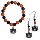 This fun and colorful Auburn Tigers fan bead jewelry set is fun and casual with eye-catching beads in bright team colors. The fashionable dangle earrings feature a team colored beads that drop down to a carved and enameled charm. The stretch bracelet has larger matching beads that make a striking statement and have a matching team charm. These sassy yet sporty jewelry pieces make a perfect gift for any female fan. Spice up your game-day outfit with these fun colorful earrings and bracelet that are also cute enough for any day. Officially licensed College product Licensee: Siskiyou Buckle. Colorful dangle earrings with team colored fan beads and hypo-allergenic fishhook posts. The chic team charm has enameled team colors and carved details. Brightly colored bead bracelet stretches to fit even large wrists. This is the perfect fan set for any fashionable female Auburn Tigers fan