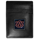 Our officially licensed Money Clip/Card Holders won't make you choose between paper or plastic because they stow both easily. Features our sculpted and enameled Auburn Tigers emblem on the front of the wallet. Officially licensed College product Licensee: Siskiyou Buckle. Genuine fine grain leather wallet. Credit card slots. Magnetic money clip that will not damage your cards. Metal Auburn Tigers emblem with enameled team colors
