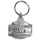 Our United States Navy key chain features "United States Navy" boldy in the center. It is surrounded by an aircraft carrier, a gun boat, an airplane and the Navy seal. On the back are the words, "The U.S. Navy is second to none as the largest, the most modern and the most powerful Navy in the world." Key chain is 1-3/4" x 1-1/2".Fully cast metal key chain with exceptional detail. Standard split ring for organizing home and auto keys. Durable, solid metal design allows the key chain to last through years of wear and tear. .