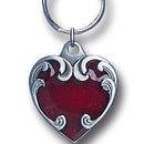 Heart key chain. This key chain is in the shape of a heart with intricately carved detail and dark red enamel. The perfect gift for someone you love! Key chain is 1-1/2" x 1-1/2".Fully cast metal key chain with carved details that is built to last. Standard split ring to keep home and auto keys organized. Expertly enameled color details. .