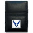 This innovative jacob's ladder wallet design traps cash with just a simple flip of the wallet! There are also outer pockets to store your ID and credit cards. The wallet is made of fine quality leather with an enameled team emblem. Officially licensed Military, Patriotic & Firefighter product Licensee: Siskiyou Buckle. Genuine fine grain leather wallet. Wallet secures your cash with just a flip. Comes with ID and card slots. Metal emblem with enameled team colors